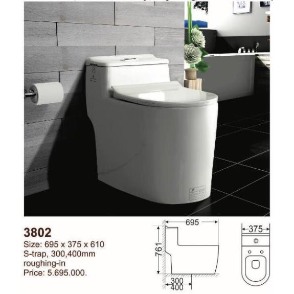 Mã sản phẩm : 3802tên sản phẩm : bồn cầu 1 khối , đóng nắp êm
