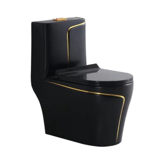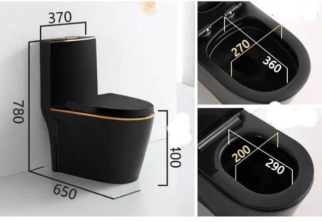 Bồn cầu đen viền vàng. Công nghệ men phủ nano chống bám bẩn. Nắp êm xả xoáy.Hàng nhập khẩu Thailand.