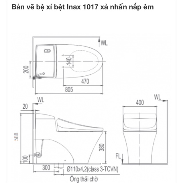 ô tảThông tin cơ bản bồn cầu Inax AC-1017VRN