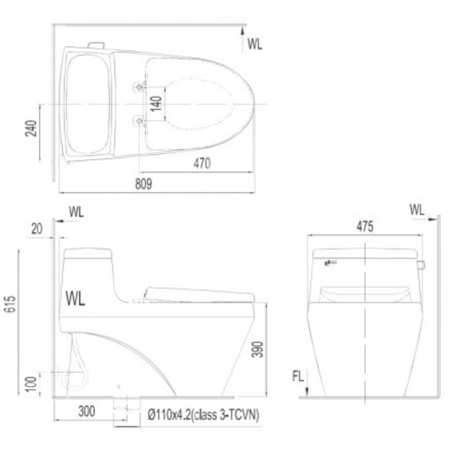 - Bàn cầu sử dụng 100% lượng nước xả từ phía trên, tạo nên dòng xoáy cực mạnh rửa trôi mọi vết bẩn.