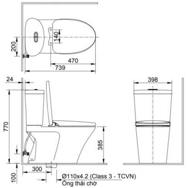 Tâm thoát : 300mm (+-5)