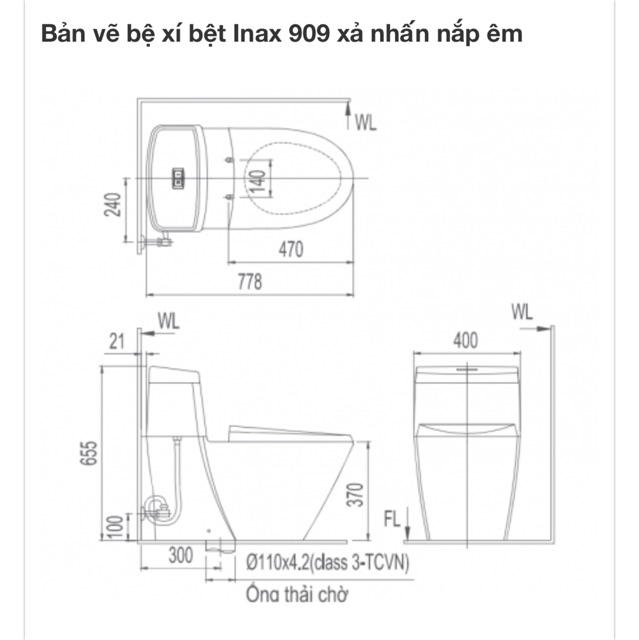 giao hàng miễn phí hcm 0987166432Thông tin cơ bản bồn cầu Inax AC-909VRN-1