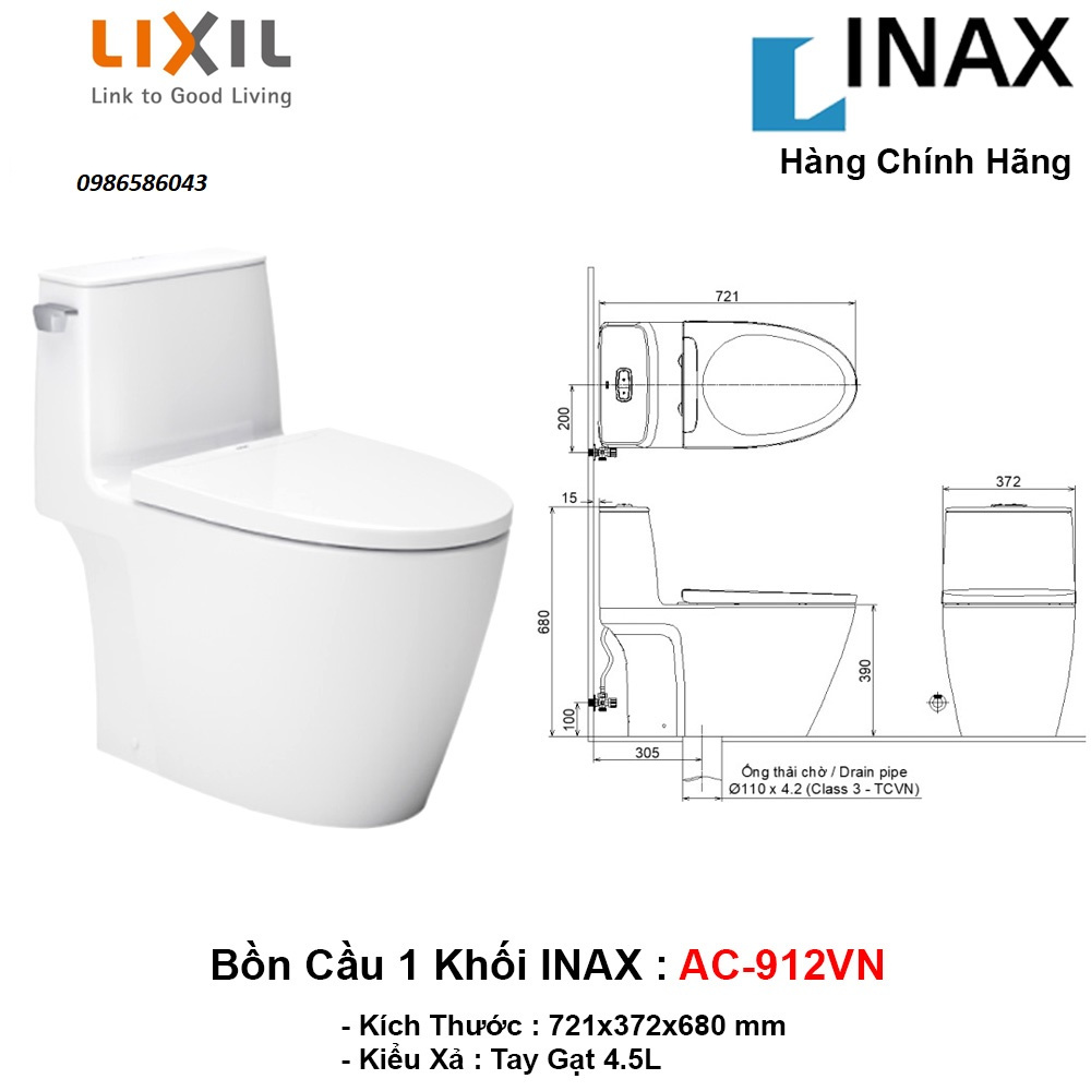 Tư vấn vui lòng liên hệ số ĐT/ZALO. 0986586043Thông tin cơ bản bồn cầu Inax AC-912VN xả gạt