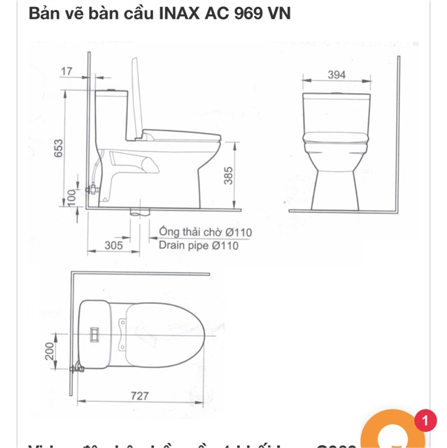 Nhà cửa & Đời sống > Đồ dùng phòng tắm > Bồn cầu, ghế và nắp bồn cầu || Bồn cầu INAX AC 969VN chính hãngCòn hàng