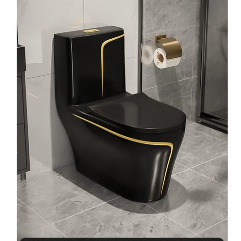 Nhà cửa & Đời sống > Đồ dùng phòng tắm > Bồn cầu, ghế và nắp bồn cầu || BỒN CẦU KHỐI MÀU ĐEN BÓNG SỌC VÀNGCòn hàng