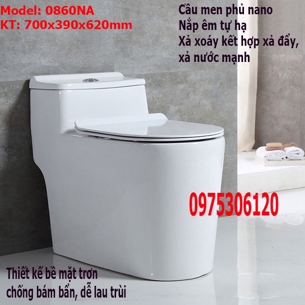Bồn Cầu Liền khối 1 Khối 0860NA Phương Nam Phát XẢ XOÁY KẾT HỢP XẢ ĐẨY NƯỚC MẠNH MEN NANO CAO CẤP