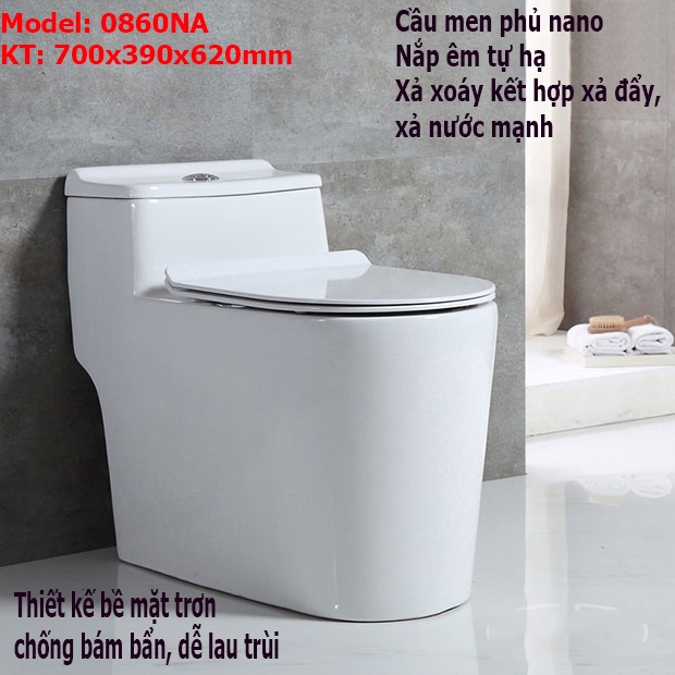 Bồn Cầu Liền khối 1 Khối 0860NA XẢ XOÁY KẾT HỢP XẢ ĐẨY NƯỚC MẠNH MEN NANO CAO CẤP