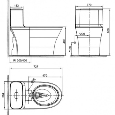 Bồn cầu một khối American Standard WP-1880 dòng Signature Chiều dài: 727mm Chiều rộng: 379mm Chiều cao: 650mm