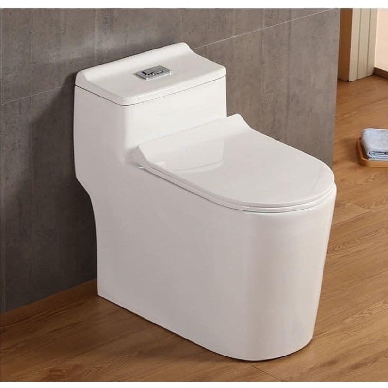 - Sản phẩm bồn cầu xả nhấn liền khối nắp êm