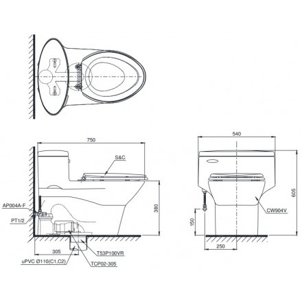 Thông tin cơ bản bồn cầu TOTO MS904T2 1 khốiBàn cầu của thương hiệu thiết bị vệ sinh TOTO