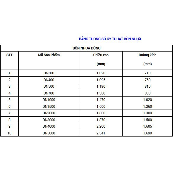 Bồn nhựa đứng đa năng Đại Thành, bảo hành 10 năm