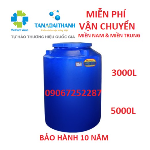 Bồn nhựa đứng Đại Thành 3000L-5000L, bảo hành 10 năm