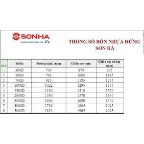 Bồn nhựa đứng Sơn Hà, bồn đựng nước từ 300lit - 2000lit, BH 10 năm - Đúng hàng đúng chất lượng