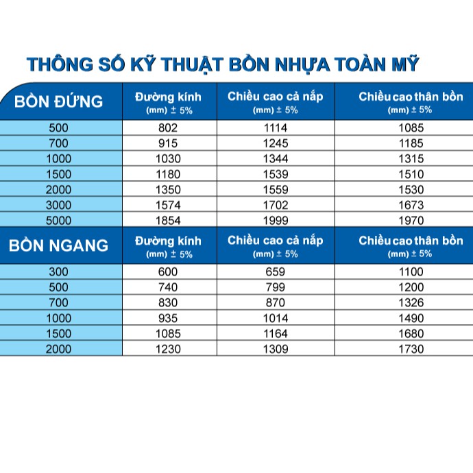 Bồn nhựa nguyên sinh Toàn Mỹ ECO chịu được mọi điều kiện thời tiết, không nứt vỡ, thích hợp chứa nước, hóa chất và thực phẩm…
