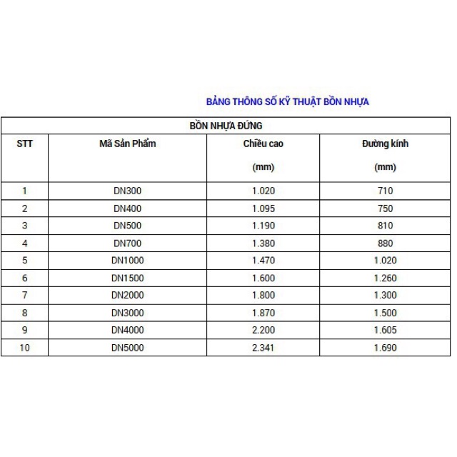 Giới thiệu Bồn nhựa nước Đại Thành 300L-2000L đứng, bảo hành 10 năm
