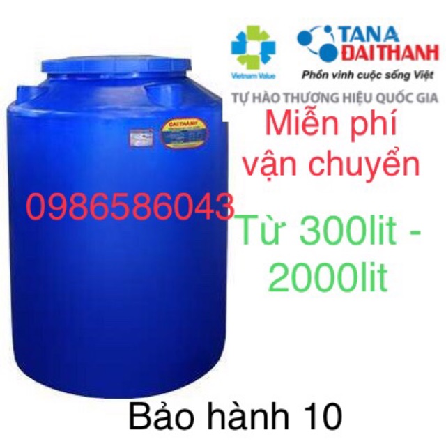 Hỗ trợ và tư vấn. Liên hệ ĐT/ ZALO 0986586043Bồn nước nhưa Đại Thành 300- 2000 LÍT đa chức năng đã có nhiều cải tiến đột phá trong công nghệ sản xuất, chế tạo để tăng tính an toàn và độ bền cho sản phẩm.Toàn bộ sản phẩm bồn nước Đại Thành đều thích hợp cho tàu bè, vùng nước nhiễm phèn, nước nhiễm mặn...