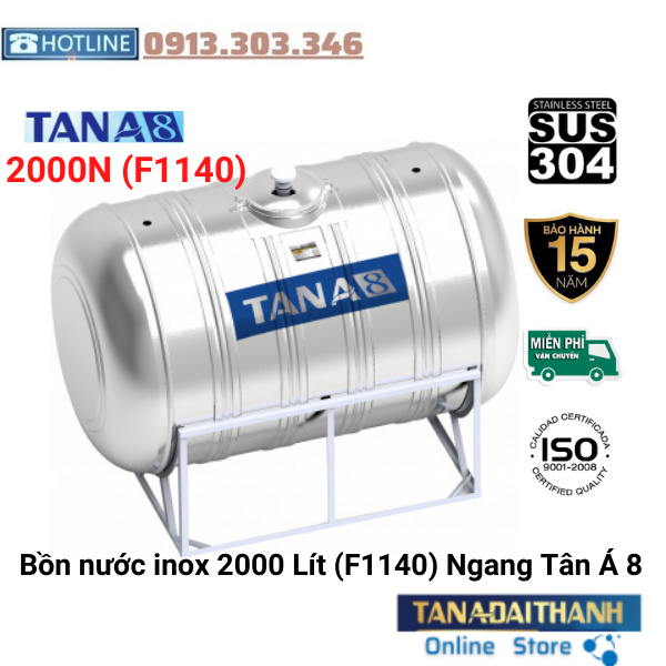 Bồn Nước Inox Tân Á 8 Cao cấp Ngang 2000L (F1140 - F1340), bảo hành 15 năm, Tân Á Đại Thành online