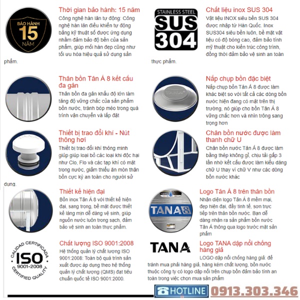 Để tránh mua phải hàng giả, hàng kém chất lượng, bồn nước thuộc công ty có logo dập nổi trên chụp bồn đảm bảo tính an toàn trong việc chọn mua sản phẩm.