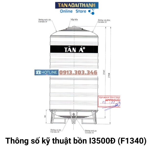 Giới thiệu Bồn Nước Inox Tân Á 8 Cao cấp Đứng 3500L (F1340), bảo hành 15 năm, Tân Á Đại Thành online