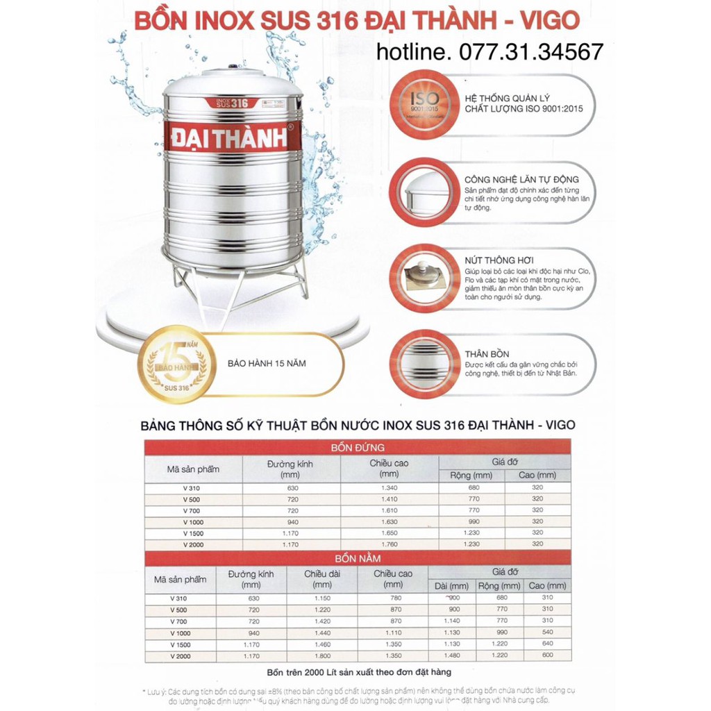 Nhà cửa & Đời sống > Đồ dùng phòng tắm > Khác || Bồn nước inox316 đứng cao cấp Đại Thành VIGO, téc nướcCòn hàng