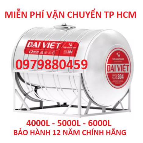 Miễn phí vận chuyển HCM - Bồn Nước nằm inox304 Đại Việt - bảo hành 12 năm (3000 lít- 6000 lít)- Tư vấn sản phẩm 0979880459Vật liệu INOX siêu bền: Sản phẩm bồn nước được chế tạo bằng vật liệu thép không gỉ SUS 304 siêu bền đảm bảo an toàn thực phẩm.