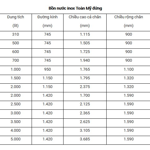 Giới thiệu Bồn nước, tec nước Toàn mỹ SUS304, bảo hành 12 năm