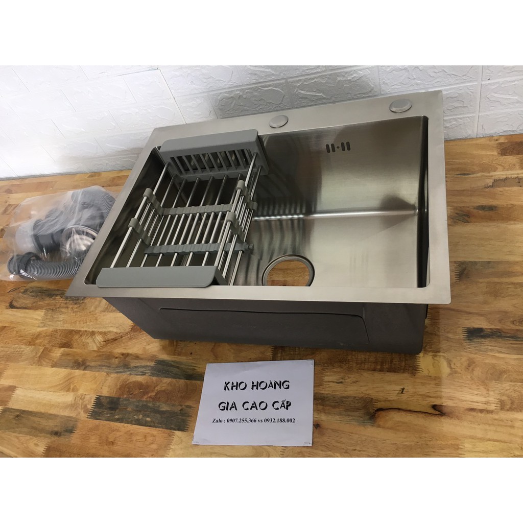 Bồn rửa bát (chén) chậu rửa chén inox 304 Size 60x45cm Tằng kèm xi phông và rổ đa năng