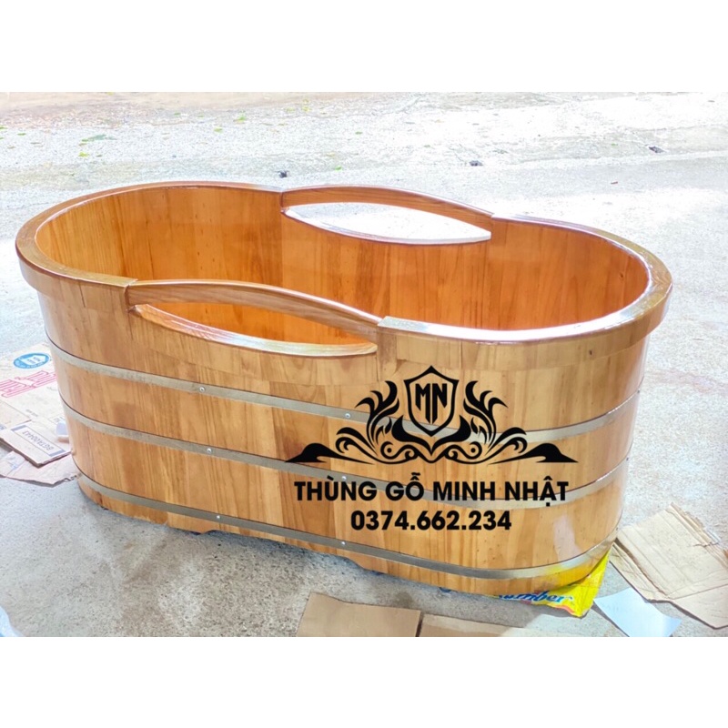 Bồn tắm dài gỗ thông tay nắm, bồn tắm dài gỗ thông bo viền quanh miệng
