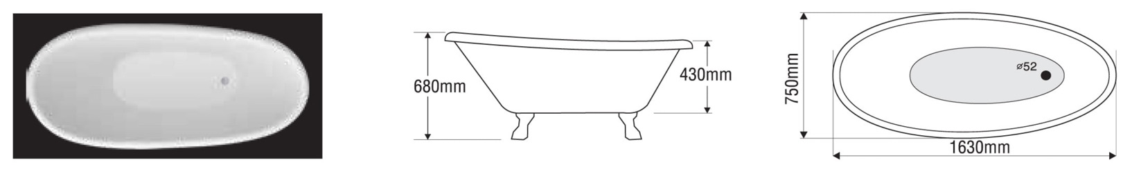 BỒN TẮM EUROCA OVAL - MODEL EUO - CLASSIC - BẢO HÀNH 3 NĂM