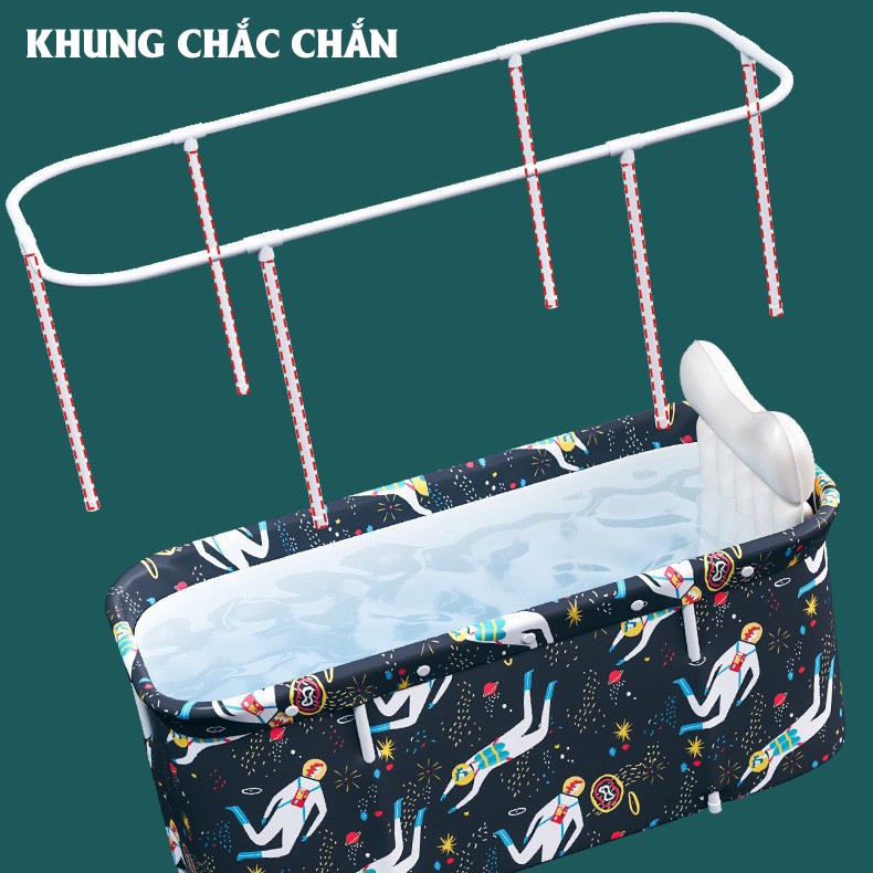 Bồn tắm gấp gọn dành cho người lớn, chất vải Oxford dày dặn chống thấm, cách nhiệt lên đến 3 giờ, 120x55x50cm