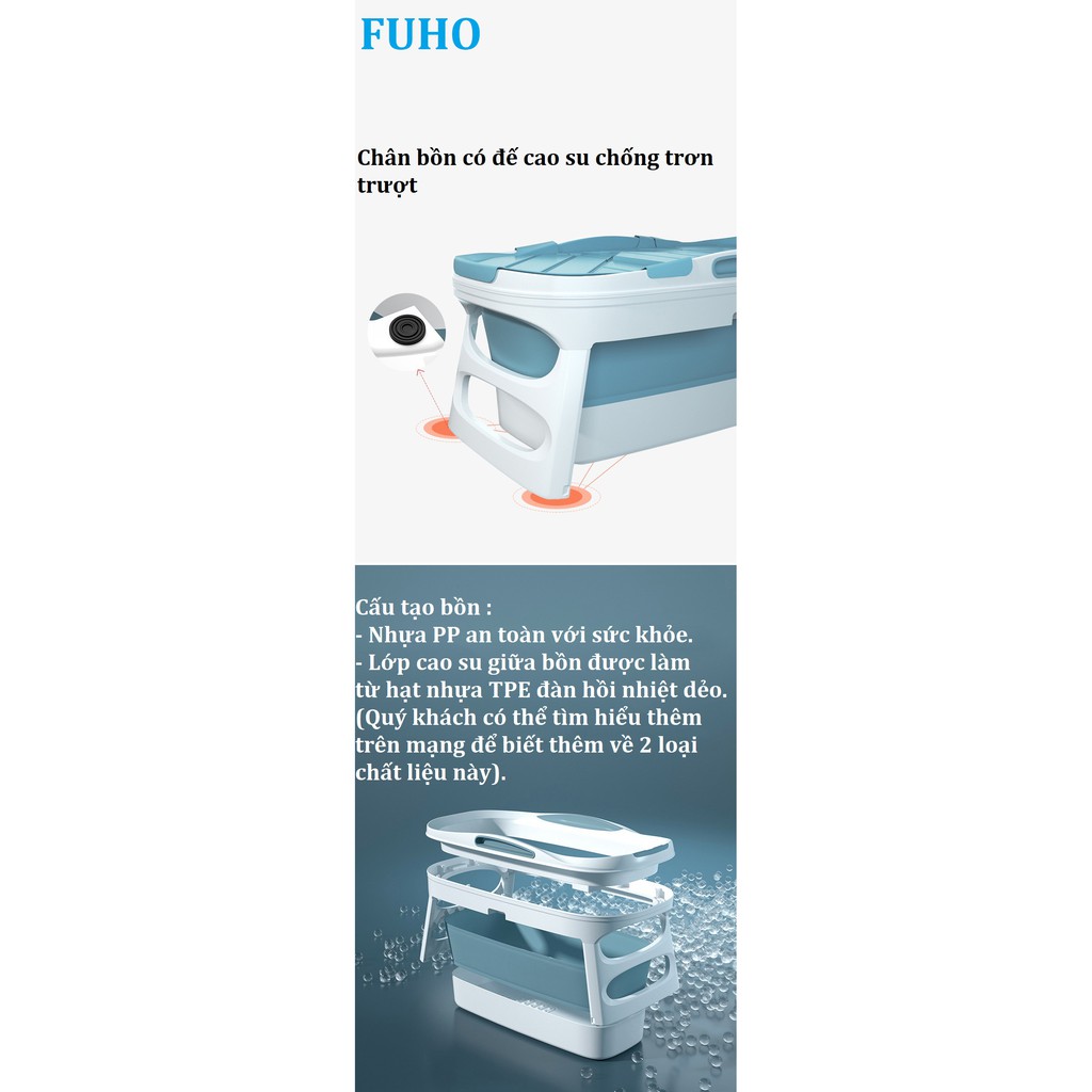 Giới thiệu Bồn tắm gấp gọn FUHO dành cho người lớn chất liệu nhựa PP và hạt nhựa TPE, dài 140cm có thể làm bể bơi trẻ em