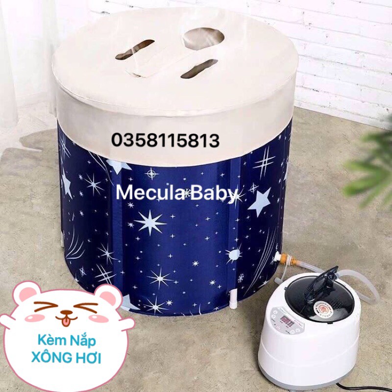 Bồn tắm gấp gọn khung thép kèm nắp xông hơi và lá tắm thảo dược của người dao đỏ