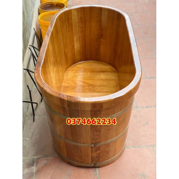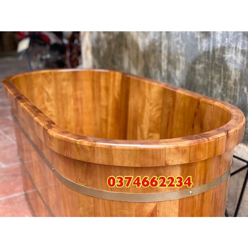 ⚡Bồn tắm bằng gỗ được thiết kế dáng nằm ( oval ), bo viền mềm mại 2 lớp chắc chắn. Với kích thước rộng duỗi chân ngâm tắm thoải mái, sức chứa 1 người lớn ngâm tắm thư giãn.