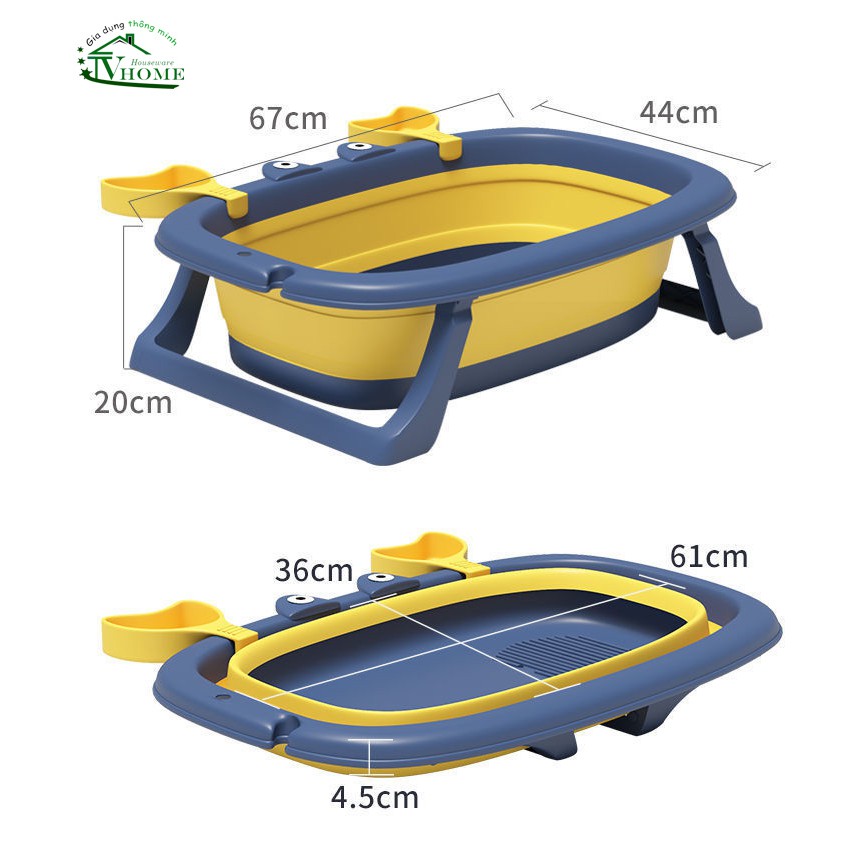 BỒN TẮM TRẺ EM CON CUA- Thân của bồn tắm gấp gọn sử dụng chất liệu PP và TPE bền bỉ, chịu tải tốt, an toàn với làn da, chống trầy xước do va đập.