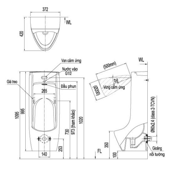 Giới thiệu Bồn Tiểu Nam Inax ASU-500V/BW1