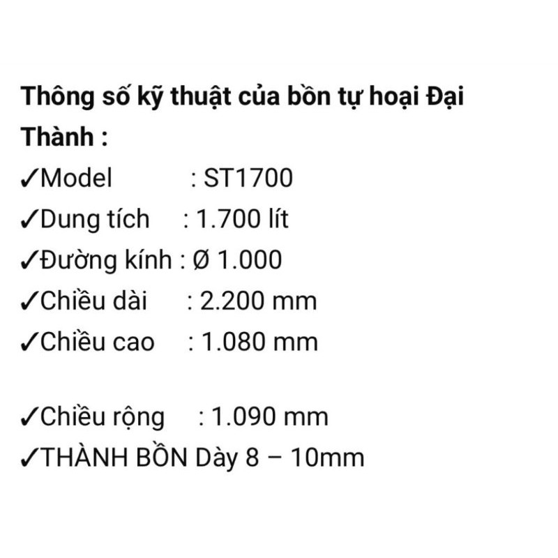Ưu điểm sản phẩm: BỒN TỰ HOẠI ĐẠI THÀNH