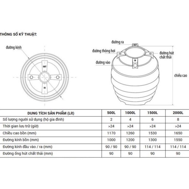1. Thông tin cơ bản bồn tự hoại Đại Thành 500L-1000L- 1500L - 2000L
