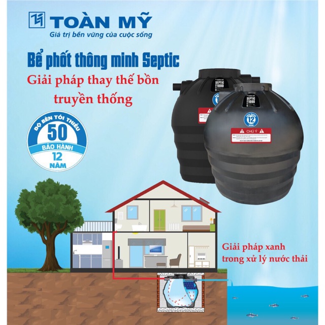 Giới thiệu Bồn tự hoại Toàn Mỹ nhựa, dễ lắp đặt và bảo trì, BH 50 năm