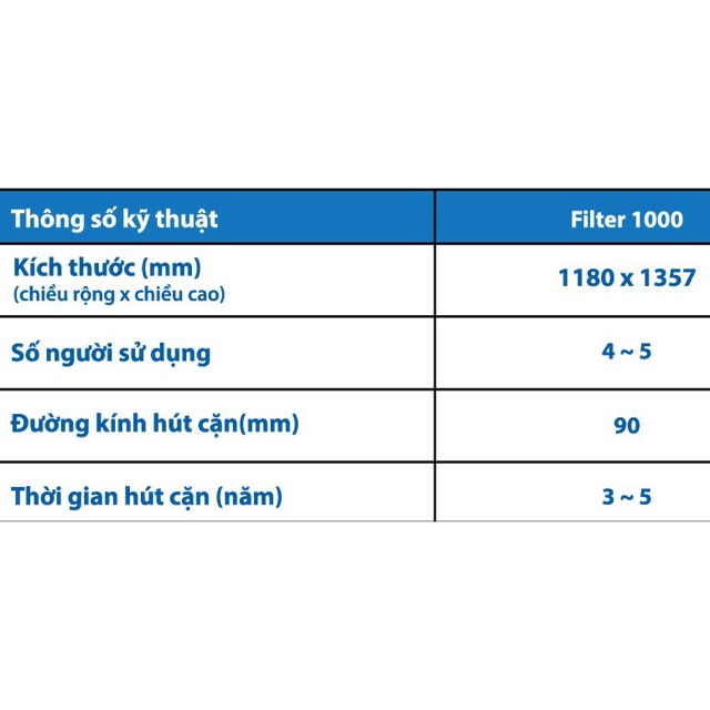Kích thước bồn 1000L :(Rộng x cao) 1180 x 1357, đường kính hút cặn 90mm, thời gian hút cặn 3-5 năm