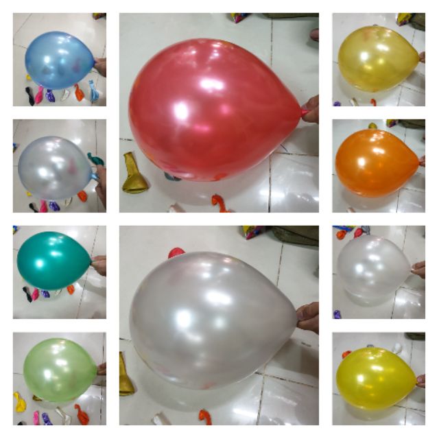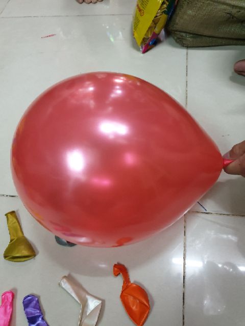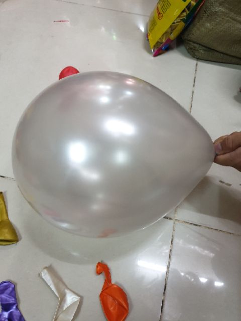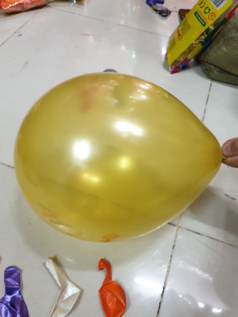 Bong Bóng Cao Su có cán 1 lớp nhũKhi thổi lên có độ bóng dùng trong trang trí tiệc và lễ hội, có thể bơm khí Heli cho bóng bay lên.