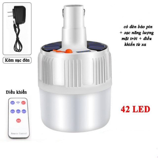 Bóng Đèn Buld Tích Điện V51 Có Remote Điều Khiển Siêu Sáng 2 Chế Độ Sạc Pin Và Năng Lượng Mặt Trời