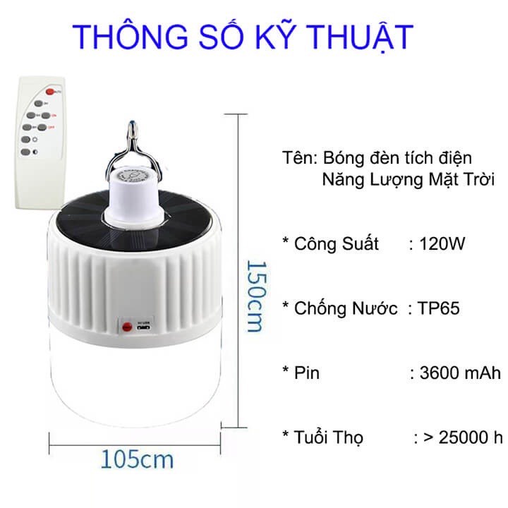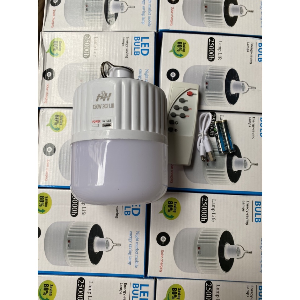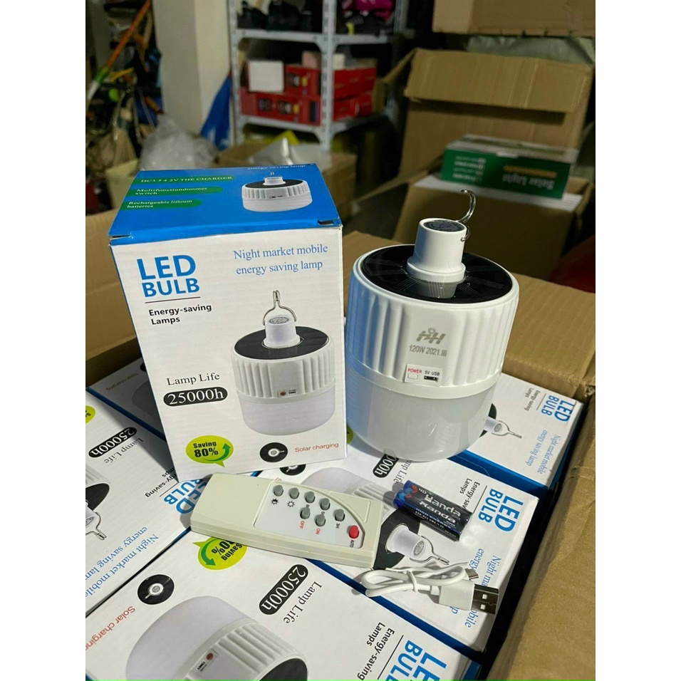 Bóng Đèn Led 120W Tích Điện Và Sạc Năng Lượng Mặt Trời Có Điều Khiển Từ Xa Kèm Theo Củ Sạc
