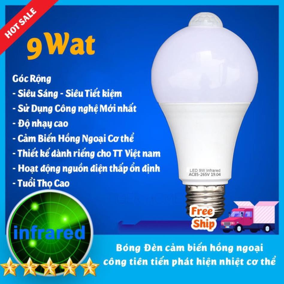 Bóng đèn led Cảm biển chuyển động, Cảm Ứng Thân nhiệt 9wThiết kế cho thị trường VN Siêu Nhạy, Siêu Tiết Kiệm Độ sáng cao