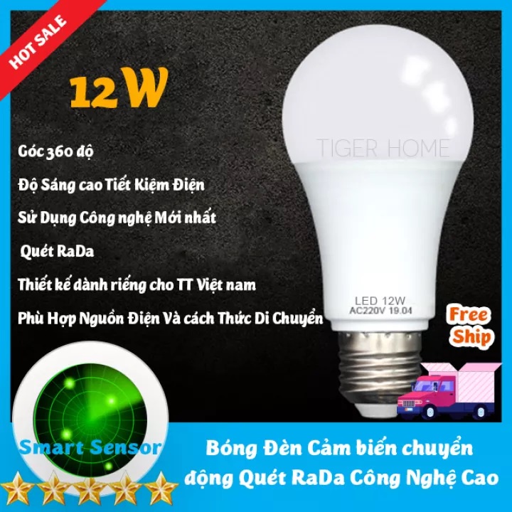 - Bóng đèn Led TigerLife cảm ứng thông minh 7W tự động tắt mở khi có người đến gần thích hợp sử dụng cho cầu thang; nhà kho; nhà vệ sinh; hành lang....