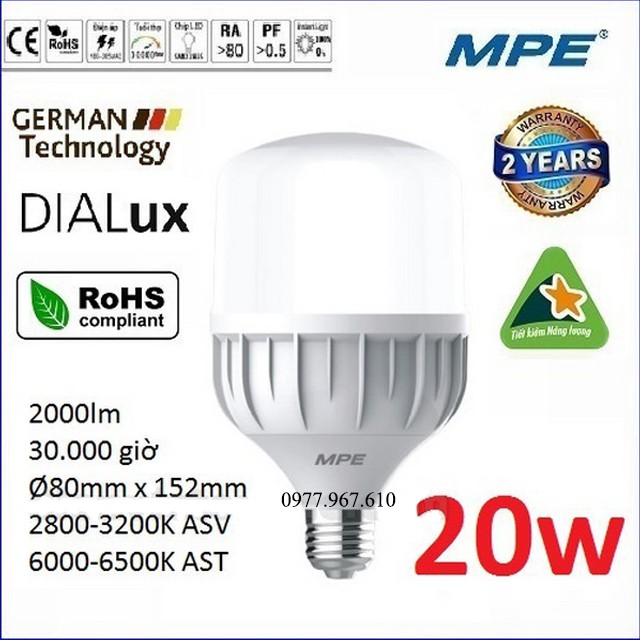 Bóng đèn Led MPE 20W siêu sáng siêu bền, siêu tiết kiệm điện
