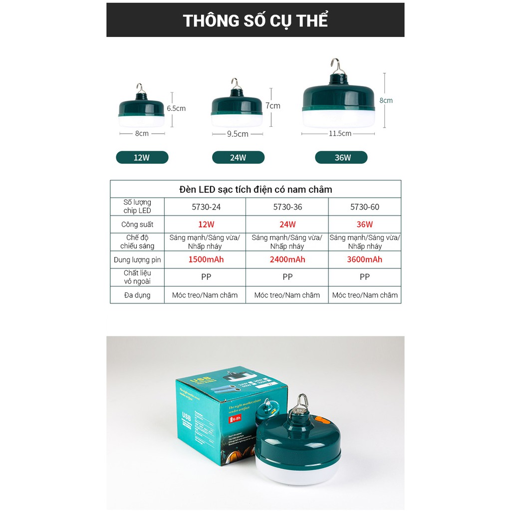 Giới thiệu Bóng đèn LED sạc tích điện C12 đầu hút nam châm lực hút mạnh, chống nước, có móc treo tiện lợi, 3 chế độ sáng tùy chỉnh