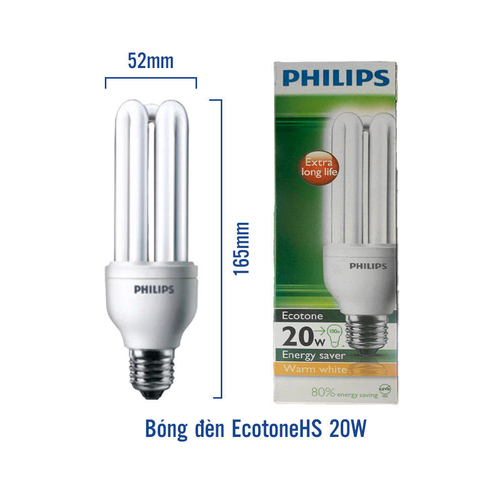 Bóng đèn Philips EcotoneHS 20W E27, giảm chi phí sử dụng với độ sáng cao và tuổi thọ lâu dài cho không gian làm việc chuyên nghiệp.