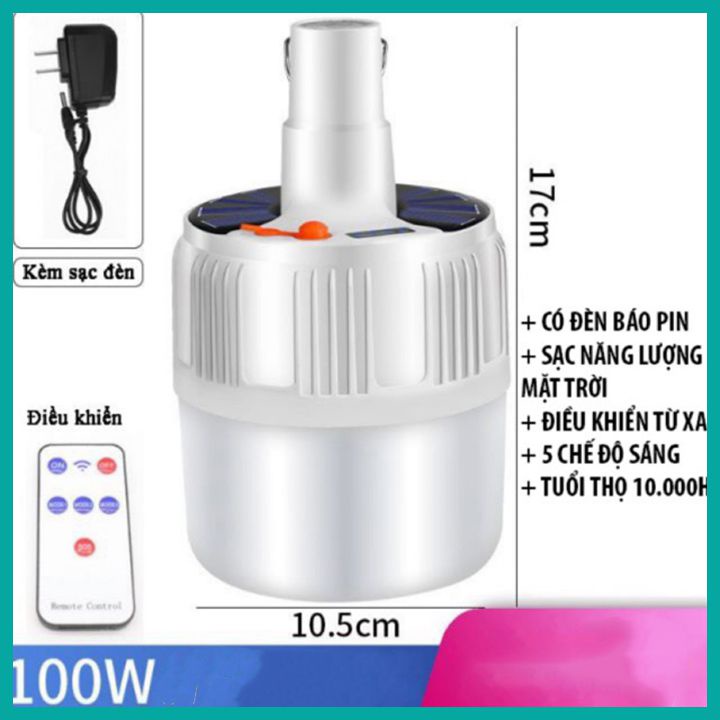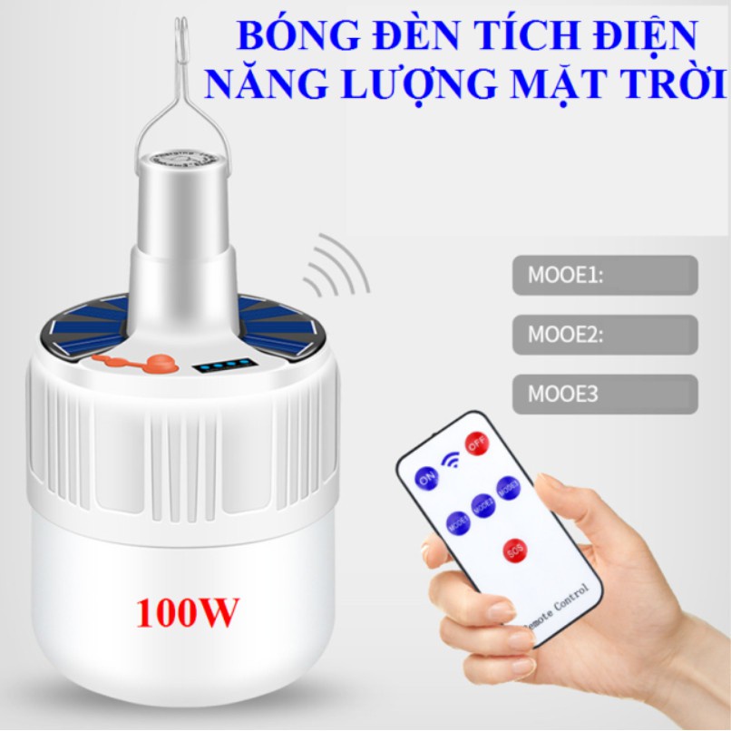 Bóng đèn tích điện 100w dùng năng lượng mặt trời có remote điều khiển