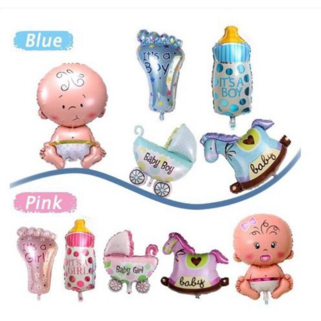 ✔️ Các Bong bóng hình EM BÉ VƯƠNG MIỆN, XE NÔI, BÌNH SỮA, NGỰA GỖ, BÀN CHÂN có kích thước 35cm