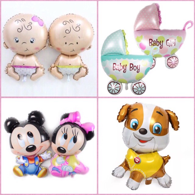 Bóng lẻ tráng nhôm hình chó con, em bé , xe nôi , mickey size to đại